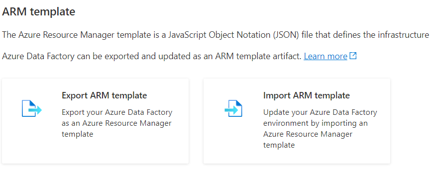 Using Azure Resource Manager (ARM) templates, which are JavaScript Object Notation (JSON) files, one could define the infrastructure, and configure the project. These templates gives us the ability to rollout Azure Infrastructure as code, which makes the project portable and modular. One could choose a "GitHub Quick Start" template, or build own template using the editor.