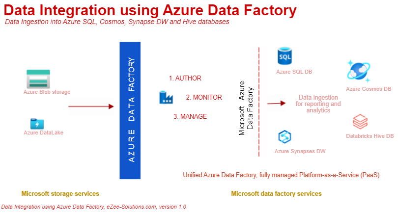 Azure Data factory is a fully managed Data Integration platform, easy to set up and get started, integrates with ease to many other Azure services and storage resources. It’s a low-code tool which helps develop rapid ETL and ELT pipelines, performing data movement and orchestration across 90+ "maintenance free" data connectors, using a coherent intuitive GUI environment. With the consumption based model, one is charged only based on the actual usage, saving significant cost.