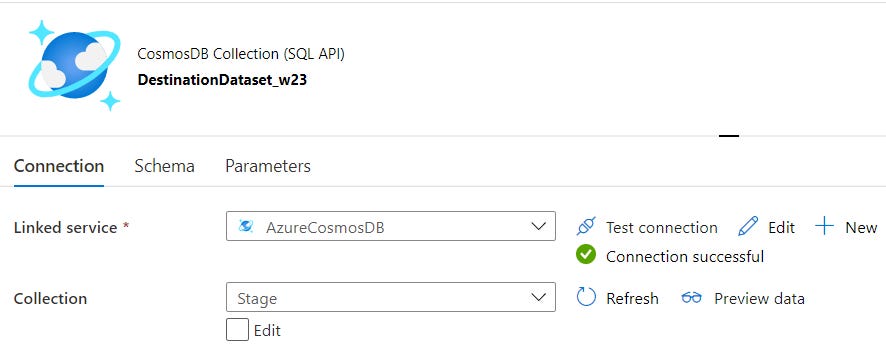 In previous pipeline, our source was already setup, we just need to choose a JSON file, as input file. Cosmos database stores JSON documents in containers, and using SQL API one could use limited SQL statements to query JSON data, just like in relational database.