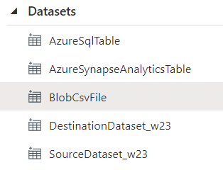 Once the pipelines are defined by creating source and sink Linked Services, each of these connections forms a Dataset. These datasets are like named views that represent a non-persist database, a table or a single file.